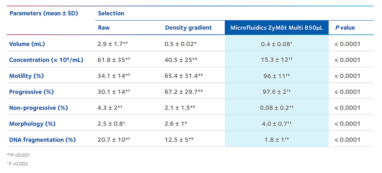 The ZyMōt™ Multi Sperm Separation Device is an innovative and simpler way to isolate high-quality, motile sperm for use in ART procedures, separating sperm with low DNA fragmentation1-4 – helping to increase the chance of a successful fertility treatment cycle.4–7